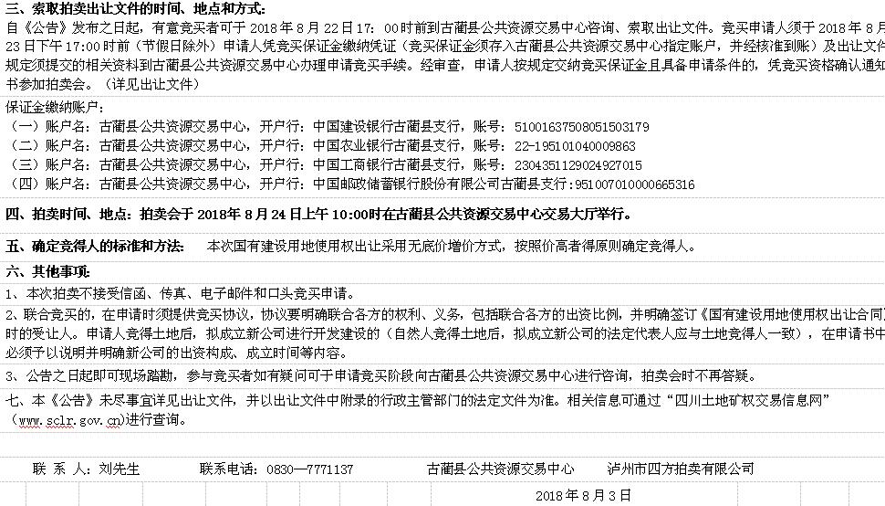 古藺縣國有建設用地使用權拍賣出讓公告