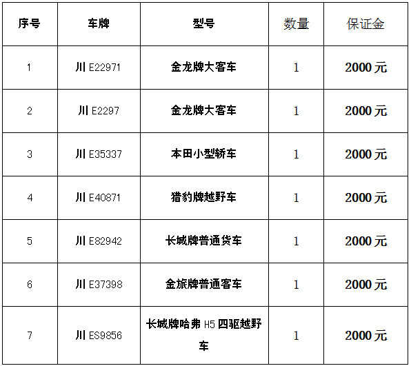 四、凡有意競買者請于2019年1月21日17:00以前將保證金匯入我公司指定賬戶(保證金以到賬為準),并持匯款依據(jù)及有效證件到我公司辦理競買手續(xù)和開通網(wǎng)絡(luò)競買權(quán)限。(戶名:瀘州市四方拍賣有限公司,賬號:51001637708051501502 開戶行:建行瀘州世紀城支行)。